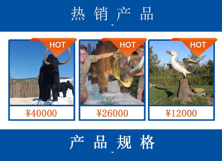 備注: 我們所制作的仿真恐龍展品和骨架模型展品被古生物專家所鑒定為“優(yōu)秀科研作品”被譽為”侏羅紀“的在現(xiàn)者。我們將秉承客戶至上的理念,為客戶設計和制造恐龍展品,并根據(jù)客戶的要求提供3年以上質(zhì)量保證,并長期為客戶提供培訓安裝維修人員和配件等售后服務,為顧客解除了恐龍展品長期使用展覽的后顧之憂。