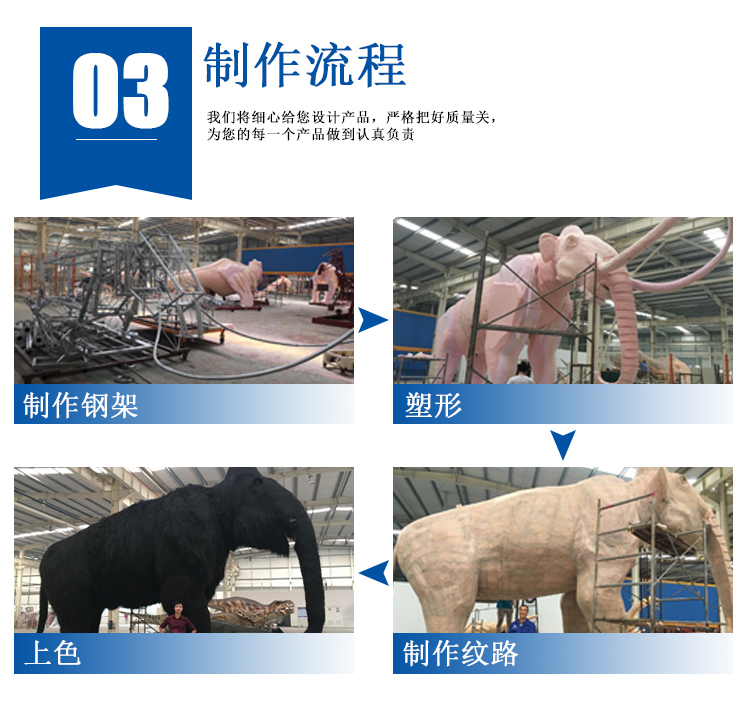 4. 采用優(yōu)質(zhì)電機和電器元件控制恐龍展品動作,達到經(jīng)久耐用動作靈活協(xié)調(diào)的效果。